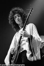 Brian e a famosa e especial túnica de Freddie: branca solta e mangas plissadas. Tudo muito estiloso e elegante.